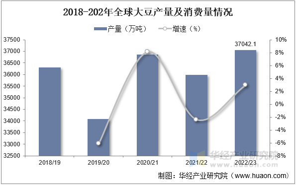 本文节选自华经财产研究院发布的《2022年中国大豆产量、种植面积及出口环境阐发,产量稳步增加,进口量有所下滑「图」》,如需获取全文内容,可进入华经谍报网搜刮查看。跟着全球大豆种植面积以及种植手艺的提拔,近年来全球大豆产量全体呈增加的态势。据材料显示,2022/23年度全球大豆产量为37042。1万吨,同比增加2。9%。此中产量排名前三的国度别离为巴西、美国和阿根廷,而我国做为全球大豆消费大国,产量占比仅为5。5%摆布,排名第四。