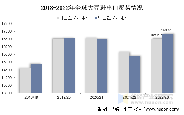 从进出口商业来看,近年来全球大豆进出口规模全体呈波动上升的态势。据材料显示,2022/23年度全球大豆进口量为16519。9万吨,同比增加5。5%;出口量为16837。3万吨,