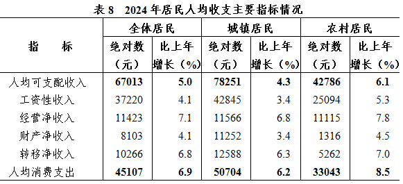 新质出产力稳步成长。全年以新财产、新业态、新模式为次要特征的“三新”经济添加值估计占全省地域出产总值的28。5%。数字经济焦点财产添加值11060亿元,比上年增加8。1%。此中规模以上数字经济焦点财产制制业添加值增加7。6%,增速比规模以上工业高0。1个百分点,拉动规模以上工业添加值增加1。4个百分点。规模以上工业中,配备制制业、高新手艺财产和高手艺制制业添加值别离增加10。0%、8。3%和8。1%,增速均高于规模以上工业平均程度;添加值别离占规模以上工业的48。9%、69。0%和17。2%,比沉别离比上年提高2。7个、1。9个和0。6个百分点。高质量成长结实推进。全年全员劳动出产率[4]为22。9万元/人,比上年增加4。6%。规模以上工业劳动出产率[5]为29。1万元/人,增加5。9%。一般公共预算收入8706亿元,增加1。2%,此中税收收入6994亿元,下降1。8%;处所一般债权收入759亿元;转移性收入5372亿元。一般公共预算收入12565亿元,增加1。7%。此中农林水、科学手艺、教育、社会保障和就业等沉点收入别离增加13。7%、12。6%、4。6%和4。6%。规模以上工业企业中,有研发费用的企业4。7万家,占规模以上工业企业的79。2%;研发费用收入增加5。5%,增速比停业收入高0。7个百分点;研发费用相当于停业收入的比例为3。17%,比上年提高0。02个百分点。规模以上工业新产物产值增加4。5%,新产物产值率为42。2%。平易近营经济金手刺擦得更亮。全年平易近营经济添加值估计占全省地域出产总值的比沉为67。4%。岁暮正在册运营从体1095万户,比上岁暮增加5。9%,此中平易近营企业和个别工商户别离有351万户和710万户,别离增加5。4%和6。1%。规模以上工业平易近营企业5。5万家,占规模以上工业企业的92。7%;全年实现添加值16258亿元,占规模以上工业的72。4%;添加值比上年增加8。1%,增速比规模以上工业高0。6个百分点,对规模以上工业添加值增加的贡献率为79。4%。平易近营企业进出口42557亿元,占全省进出口的80。8%;增加8。3%,拉动全省进出口增加6。7个百分点。农业出产总体平稳。全年粮食播种面积1047千公顷,比上年增加2。2%,产量650万吨,增加1。8%;油菜籽播种面积142千公顷,增加2。9%;蔬菜681千公顷,增加1。5%;中药材47千公顷,增加2。0%;瓜果类82千公顷。猪牛羊禽肉产量123万吨,增加2。9%,此中猪肉产量82。6万吨,增加2。2%。禽蛋产量39。4万吨,增加8。6%。牛奶产量20。8万吨,下降0。3%。生猪出栏950万头,下降0。3%。岁暮生猪存栏624万头,此中能繁母猪存栏65。7万头。全年水产物产量705万吨,增加4。7%,此中,海水产物产量542万吨,增加4。4%;淡水产物产量163万吨,增加5。6%。农业现代化行之有效。推进“多田套合”农用地结构优化,岁暮全省1652万亩永世根基农田中高尺度农田1265万亩、套合率76。6%。农业“双强”步履持续推进,农做物耕种收分析机械化程度82。5%。鞭策“土特产”先行成长,全年建成超十亿元“土特产”全财产链126条、产值3216亿元。累计认定省级种业阵型企业44家,扶植稼穑办事核心280个,获批建立全国独一聪慧农业引领区。和美村落扶植丰盛。持续深化“万万工程”,全年新(改)建农村公2023公里。岁暮城乡公交一体化率达到90%,规模化供水笼盖率超90%,农网供电靠得住率达99。99%,5G收集、光纤资本实现沉点行政村全笼盖。农村糊口垃圾分类、糊口污水处置设备、无害化卫生茅厕实现行政村根基笼盖,农村垃圾无害化处置率达100%。开展农房、管线序化、村道提拔三大步履,全年完成农房12。8万栋,管线个村。全年建成将来村落881个,岁暮和美村落笼盖率为51。7%。健全自治德治智治“四治融合”村落管理机制,累计建成省级善治(示范)村10530个、村居15515个,数量均居全国首位。强村富平易近稳步推进。岁暮全省村级集体经济收入30万元以上且运营性收入15万元以上行政村全笼盖,运营性收入50万元以上行政村占比为60%。推进城乡公共办事均等化,农村一、二级长儿园正在园长儿占比87。3%,城乡权利教育配合体笼盖所有农村塾校,鞭策“共享教师”县域流转;据初步数据,全年建成沉点核心乡镇卫生院(县域医疗卫生次核心)54家,通过保举尺度省级审核的乡镇卫生院(社区卫生办事核心)144家,办事能力达到国度评价尺度的村卫生室5559家;新增村级全平易近健身广场55个。深切实施先富带后富“三同步”步履,加强低收入农户帮扶,低收入农户人均可安排收入增加11。1%,高于全省农人收入增速5。0个百分点。全年工业添加值30072亿元,比上年增加6。9%,此中规模以上工业添加值增加7。5%。规模以上工业中,分经济类型看,国有及国有控股企业添加值增加1。9%,港澳投资企业添加值增加6。0%,外商投资企业添加值增加7。2%。分企业规模看,大、中、小型企业添加值别离增加4。0%、8。7%和8。8%。分行业看,38个工业行业大类中,31个行业添加值增加,此中汽车、计较机通信电子、纺织、电气机械和化学原料等行业别离增加19。4%、13。6%、9。7%、7。1%和6。9%,合计拉动规模以上工业添加值增加4。5个百分点。17个保守制制业添加值增加8。0%。规模以上工业企业停业收入117429亿元,增加4。8%;利润总额6039亿元,增加1。5%。