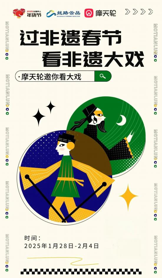 正在首个“非遗版”春节和“丝电商过大年”勾当期间,摩天轮推出“过非遗春节 看非遗大戏”新春出格勾当,面向泛博市平易近和中外旅客展现中国非遗魅力。1月28日,勾当专题上线,非遗戏曲大集结,一键解锁保守艺术瑰宝。更有平台暖心补助,用更实惠的价钱走进剧场,沉浸式感触感染过年看大戏的浓浓年味儿,沉拾儿时回忆中的年节欢喜。快来取家人伴侣共赴这场非遗盛宴,让保守正在新春熠熠生辉!